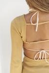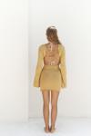 Mini düz örgü elbise. Evaze kol. Sırtı açık pencere detay, ayarlanabilir şerit detay.