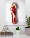 Sarışın Kırmızı Elbiseli Kadın Model Cam Tablo