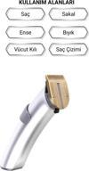 Açma/kapama anahtarı 2 fonksiyonlu hız Paket İçeriği Tıraş Makinesi Şarj Adaptörü 5 Adet Kesim Tarağı Yağ Şişesi Temizleme Fırçası