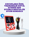 Eğlencenin her yerde sizinle olması için tasarlanan bu taşınabilir retro oyun konsolu, içinde yüklü 400 klasik oyunla birlikte gelir. Küçük boyutlarına rağmen büyük eğlence sunar. Her yaş grubuna hitap eden oyun türleri ile dolu geniş bir oyun kütüphanesine sahiptir.AV çıkışı sayesinde cihazı televizyona bağlayabilir, oyunları büyük ekranda arkadaşlarınızla paylaşabilirsiniz. Şarjlı bataryası sayesinde priz aramadan uzun süre oyun oynayabilirsiniz.Cihaz, ABS plastikten üretilmiş sağlam gövdesiyle darbelere karşı dayanıklıdır. 3 inçlik ekranı ve ergonomik tasarımı sayesinde hem çocukların hem yetişkinlerin rahatça kullanabileceği bir üründür.