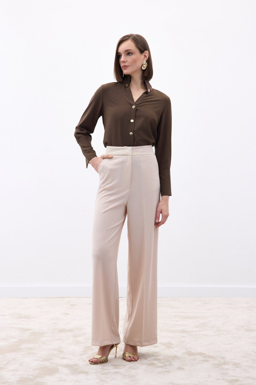 Palazzo Krep Pantolon - Taş