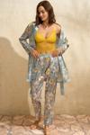 Çamaşır Kenti Saten Çiçek Baskılı Sabahlık Balensiz Desteksiz Dolgusuz Dantelli Bralet Sütyen Ve Pantolon Pijama 3