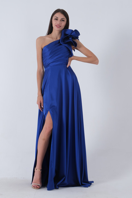 Feminist markasının zarif tasarımı, saten omuz fiyonklu abiye elbise, şıklığı ve zarafeti bir araya getiriyor.