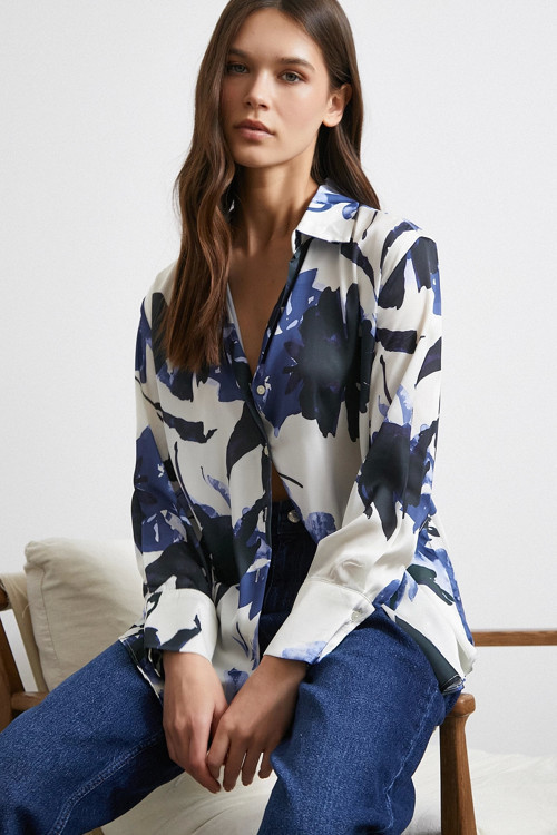 Saten Yüzeyli Desenli Gömlek Lacivert
