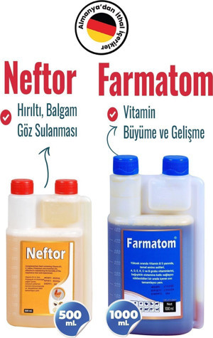 2Li Set Kuşlar Için Farmatom Vitamin 1 Lt Neftor Hırıltı Seti 500 Ml