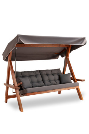 Viva 2200 3 Kişilik Ahşap Bahçe Salıncağı, Balkon ve Teras Salıncağı, Kanepe Özellikli/Antrasit