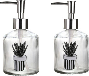 Banyo Seti Cam Sıvı Sabunluk 2 Adet,Kaktüs 1 Desen 300Ml 7,6X15,5Cm