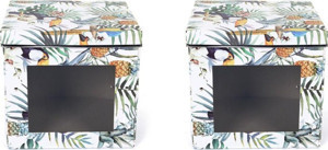 Saklama Kutusu Seti Tropikal Desenli Pencereli 2 Adet 28X28X26Cm