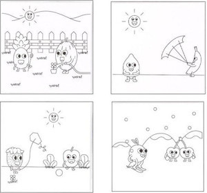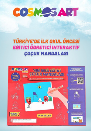 Çocuklar Için 4'lü 15*15 Cm Karton Kanvas Mandala - 6'lı Jumbo Kalem Hediyeli - Meyveler