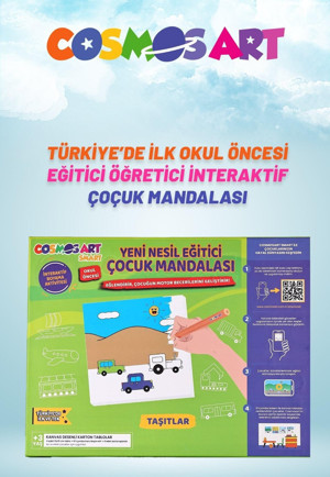 Çocuklar Için 4'lü 15*15 Cm Karton Kanvas Mandala - 6'lı Jumbo Kalem Hediyeli - Taşıtlar