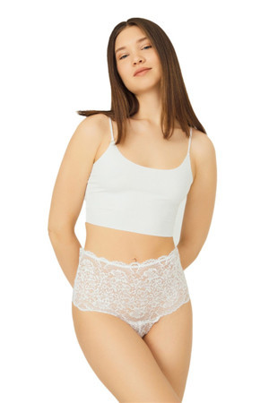 Krem Dantelli Lastik Detaylı Yüksek Bel Kadın Tanga Külot