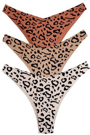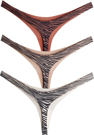 Basic Desenli Lazer Kesim Kadın Tanga Külot 3'lü Paket-1