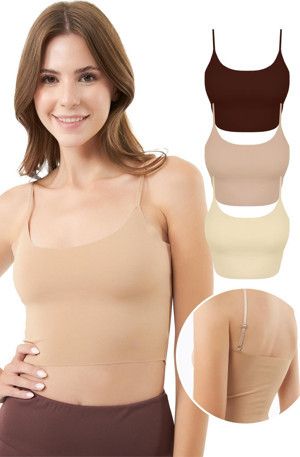 Ayarlanabilir İnce Askılı Lazer Kesim Crop Büstiyer 3'lü Paket-3