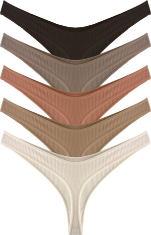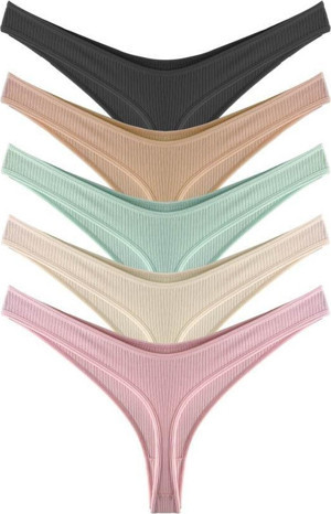 Kadın Pamuklu ve Likrali Fitilli Kaşkorse Tanga Külot 5'li Paket