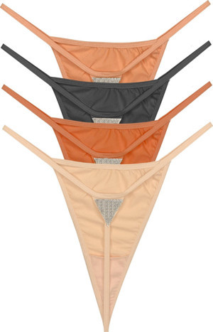 Mikro Saten Ön ve Arka Taş Detaylı Kadın String Külot 4'lü Paket