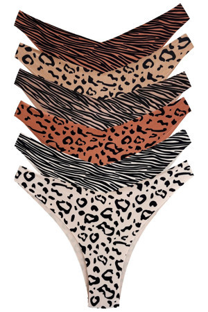 Basic Desenli Lazer Kesim Kadın Brezilya Külot 6'lı Paket
