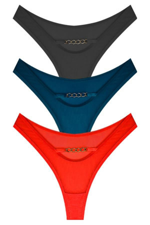 Tüllü Transparan Zincir Detaylı Kadın Brezilya Külot 3'lü Paket-2