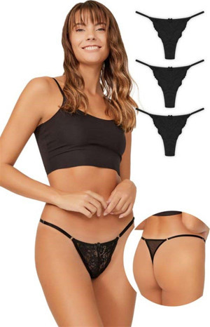 Önü Dantelli Tül Detaylı Kadın Tanga 3'lü Paket Külot - 4