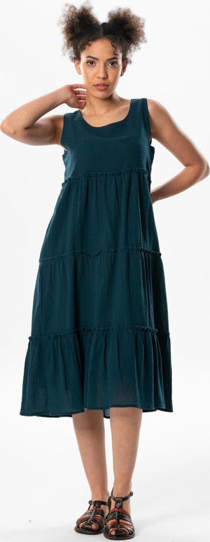 Kolsuz Şile Bezi Üçgen Katlı Midi Boy Yazlık Elbise Petrol Ptrl