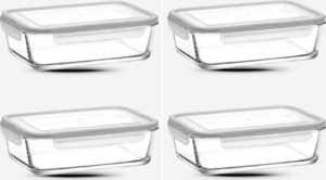 Cam Kilitli Saklama Kabı 4'Lü Set 1200Cc-Yeni Seri Büyük Dikdörtgen Cam Saklama Kabı