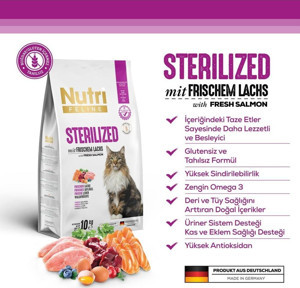 Nutri Feline Nutri Sterilised /Kısırlaştırılmış Tahılsız Somonlu Kedi Maması 10 Kg