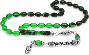 Kararmaz Metal Halat Püsküllü Arpa Kesim Süzme Yeşil-Siyah Ateş Kehribar Tesbih
