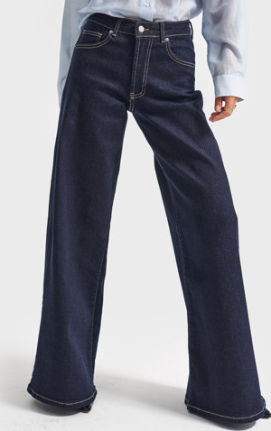 Kadın Lacivert Su Yıkama 7W4-50 Wide Leg Fit %100 Koton Denim Jean