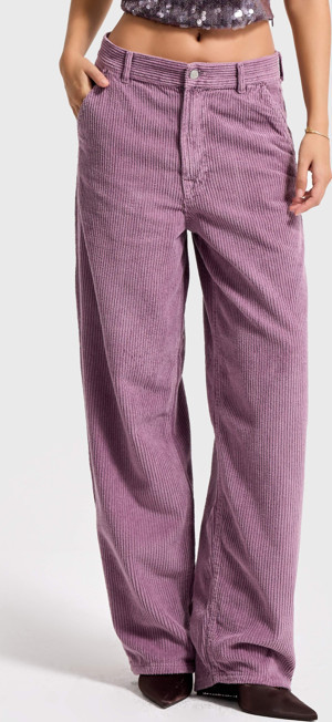 Kadın Lila Renk 29w5-111 Skater Fit Kalın Fitilli Velvet Kadife Kumaş Pantolon