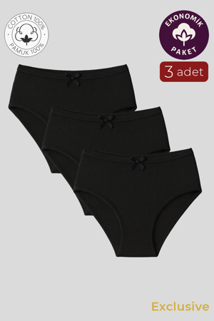 Kadın Yüksek Bel Pamuklu Ribana Slip Külot 3'lü Paket – Esnek & Rahat | Siyah K0305
