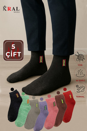 Erkek Kışlık Termal Etkili (5'Li Paket) Lambswool Kuzu Yünlü Çorap