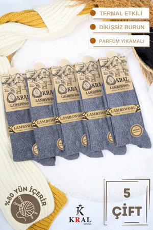 5'Li Kışlık Thermal Etkili İnce Örgülü Çorap Lambswool Yünlü (Kuzu Yünlü)