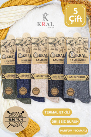 Kışlık Yün Çorap (5 ÇİFT - ADET) Lambswool Özel Kuzu Yünlü Kadınlar Için Termal Özellikli