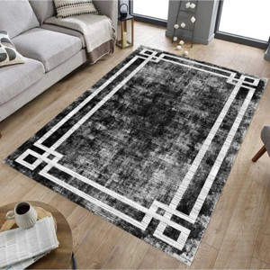 Modern Siyah Beyaz Köşe Detaylı Leke Tutmaz Kaydırmaz Taban Halı Tay Tüyü Hissi Dokulu