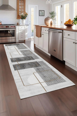 Gri Detaylı Dijital Baskı Leke Tutmaz Kaymaz Taban Salon Halısı Mutfak Halısı Ve Yolluk