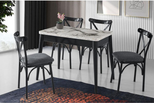 ANZİO MASA VE AY SANDALYE TAKIMI, SİYAH, 110x70