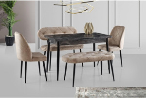 Ay Masa Ve Sandalye Bench Takımı, Krem Siyah, 120x70