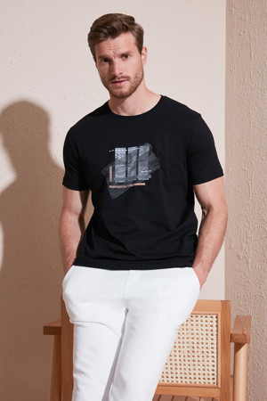 Bisiklet Yaka Pamuklu Slim Fit Erkek T Shirt 541THERE SİYAH