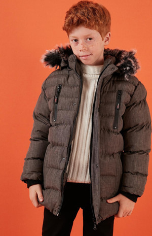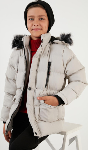 İçi Peluş Astarlı Çıkarılabilir Kapüşonlu Suya Dayanıklı Kışlık Erkek Çocuk Mont 5760022 TAŞ
