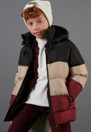 İçi Peluş Astarlı Çıkarılabilir Kapüşonlu Şişme Erkek Çocuk Mont 57611967 Siyah-Taş-Bordo