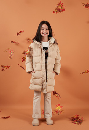Yakası Suni Kürklü Kapüşonlu Cepli Kız Çocuk Mont 6028720 EKRU