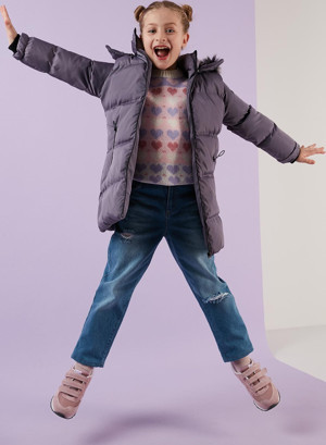 Yakası Suni Kürklü Peluş Astarlı Çıkarılabilir Kapüşonlu Dar Kesim Kışlık Kız Çocuk Mont 5760002 SAKS
