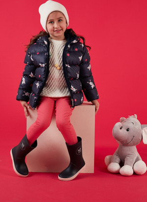 Ekstra Dolgulu İçi Yumuşak Polarlı Kapüşonlu Şişme Kız Çocuk Mont 5763001 LACİVERT