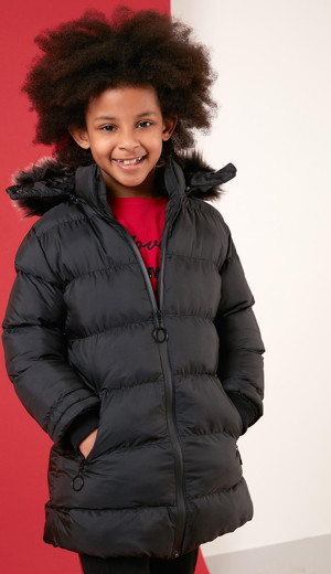 Suya Dayanıklı Suni Kürklü Çıkarılabilir Kapüşonlu Dar Kesim Şişme Kız Çocuk Mont 5765020K SİYAH