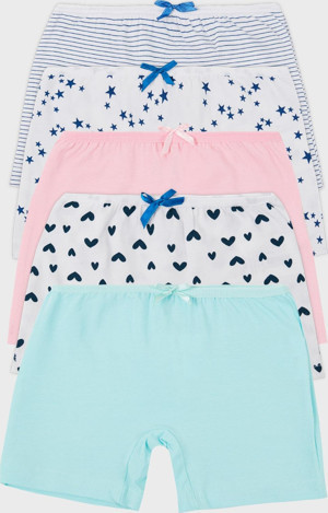 Desenli Streç Pamuklu 5'li Paket Kız Çocuk Boxer 6651008YILDIZ ÇOK RENKLİ
