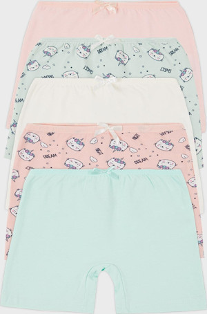 Desenli Streç Pamuklu 5'li Paket Kız Çocuk Boxer 6651009KEDI ÇOK RENKLİ