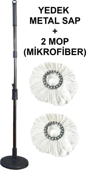 Tüm Temizlik Seti Kovalarına Uyumlu Metal Yedek Sap 2 Mop Döner Setlere Uyumlu Mikrofiber Mop Başlık