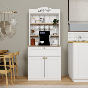 Midoser Lucas 2 Kapaklı Çekmeceli Kahve Köşesi ve Çok Amaçlı Mutfak Dolabı - Açık ceviz & Beyaz