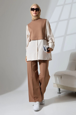 Kadın Kahverengi Mevsimlik Penye Alt Üst Spor Ve Rahat Ikili Tunik Pantolon Şık Tesettür Takım