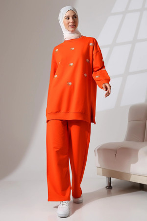 Kadın Turuncu Mevsimlik Penye Alt Üst Spor ve Rahat Tesettür Takım