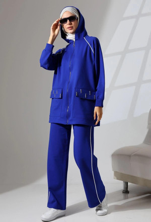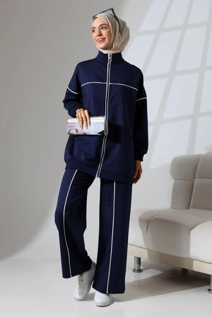 Kadın Mevsimlik Alt ve Üst Rahat Lacivert Spor Tesettür Takım